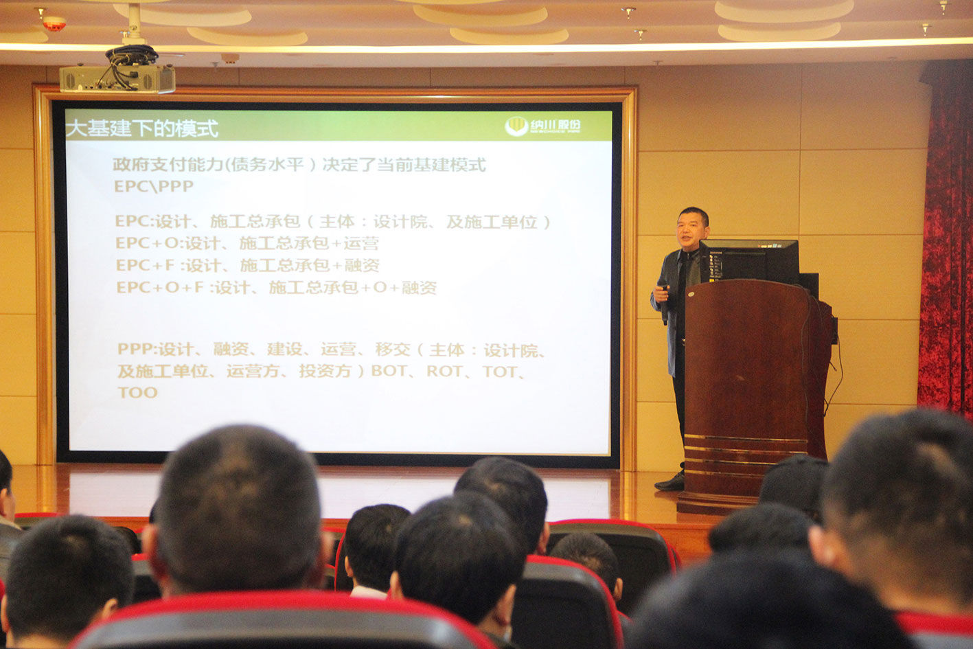 納川股份董事長助理傅義營根據當前市場環境、結合國家對基礎建設投資環境鼓勵政策,對大基建下的模式和EPC、PPP模式不同的基建工程模式下,對應的雨污管網、城市給水的管道產品銷售模式及配套的解決方案作了細致講解。