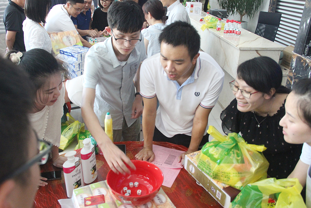 在骰子叮叮當(dāng)當(dāng)?shù)那宕囗懧曋?氣氛不斷推向高潮,不斷爆發(fā)的歡呼是某些手氣爆棚的選手,搖出了大獎(jiǎng)。骰子抖一抖,獎(jiǎng)品就到手。伴隨著此起彼伏尖叫聲,每一位伙伴都收獲頗豐。看看大家拿到手軟的禮物以及臉上藏不住的笑意,就知道禮品有多么的豐厚了!
